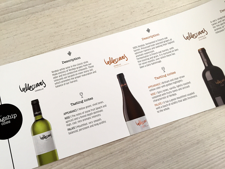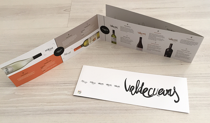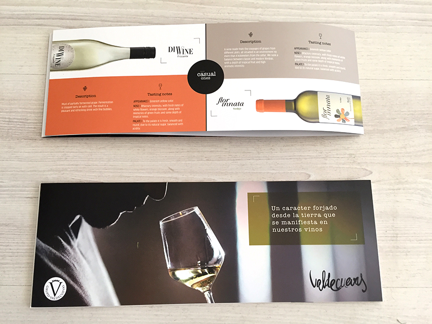 El Grupo Valdecuevas elabora productos de calidad y alta gama. En este caso nos pidió diseñar su folleto de producto para su gama de vinos.
