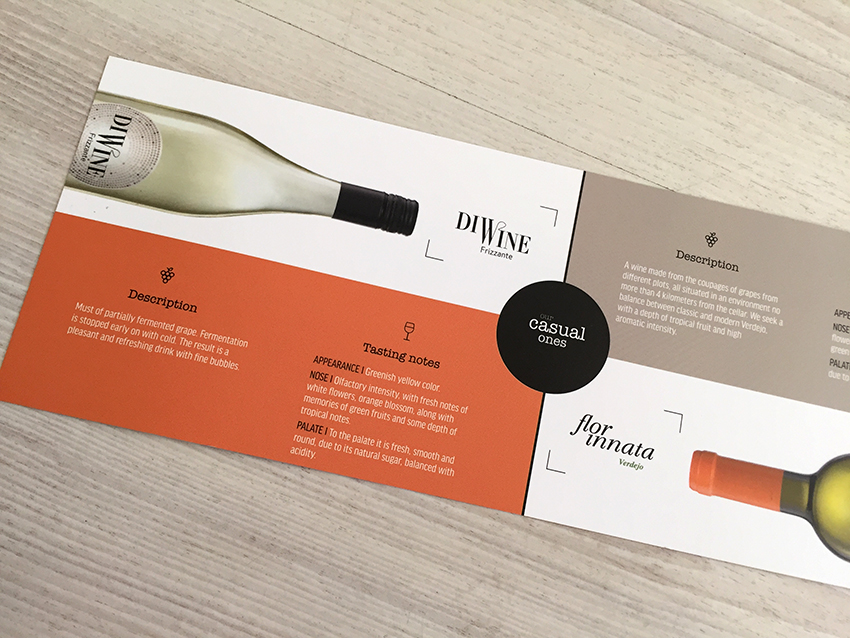 Optamos por una imagen desenfadada y un formato en tríptico que diera cabida a todos sus vinos, que dispusimos en formales y desenfadados.